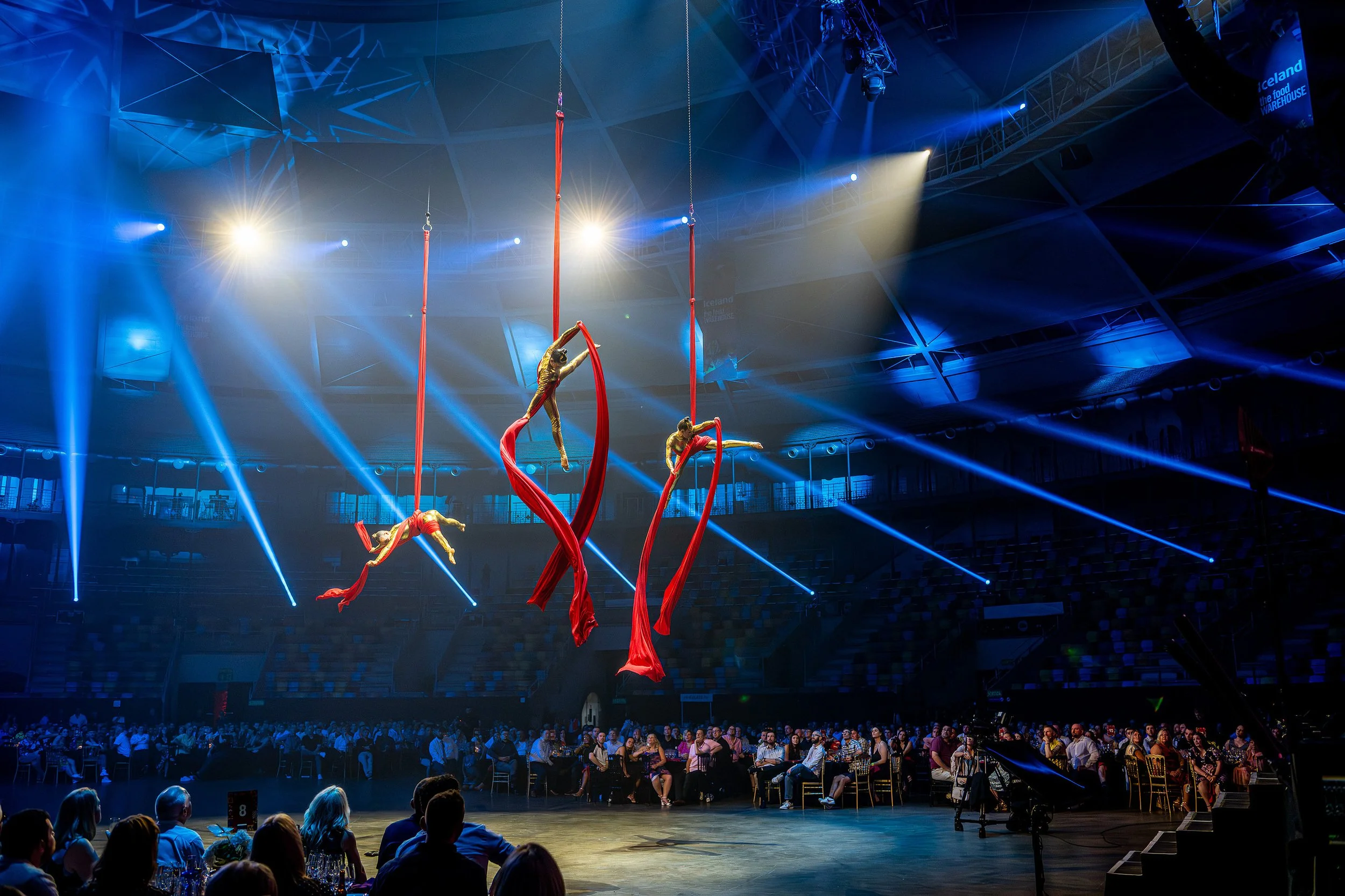EL CAMERINO received a commission from a UK agency requesting a visually stunning and joyful show created especially for a very special night. We produced a bespoke circus with varied acts and breathtaking aerial performances, given the venue's high altitude.
